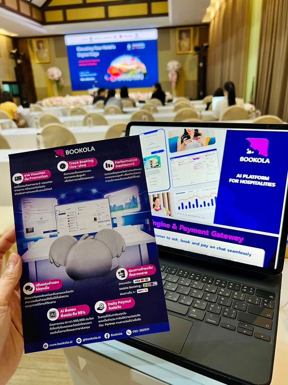 หนึ่งในไฮไลต์ของการบรรยายคือหัวข้อ “Transforming Hospitality with AI: Fueling Service Excellence and Revenue Growth” ที่ BOOKOLA ได้แสดงให้เห็นว่า การผสานพลังของแชตบอตอัจฉริยะ กับ Social Media ยอดนิยม ช่วยเร่งยอดจองและสร้างความได้เปรียบทางธุรกิจอย่างไร